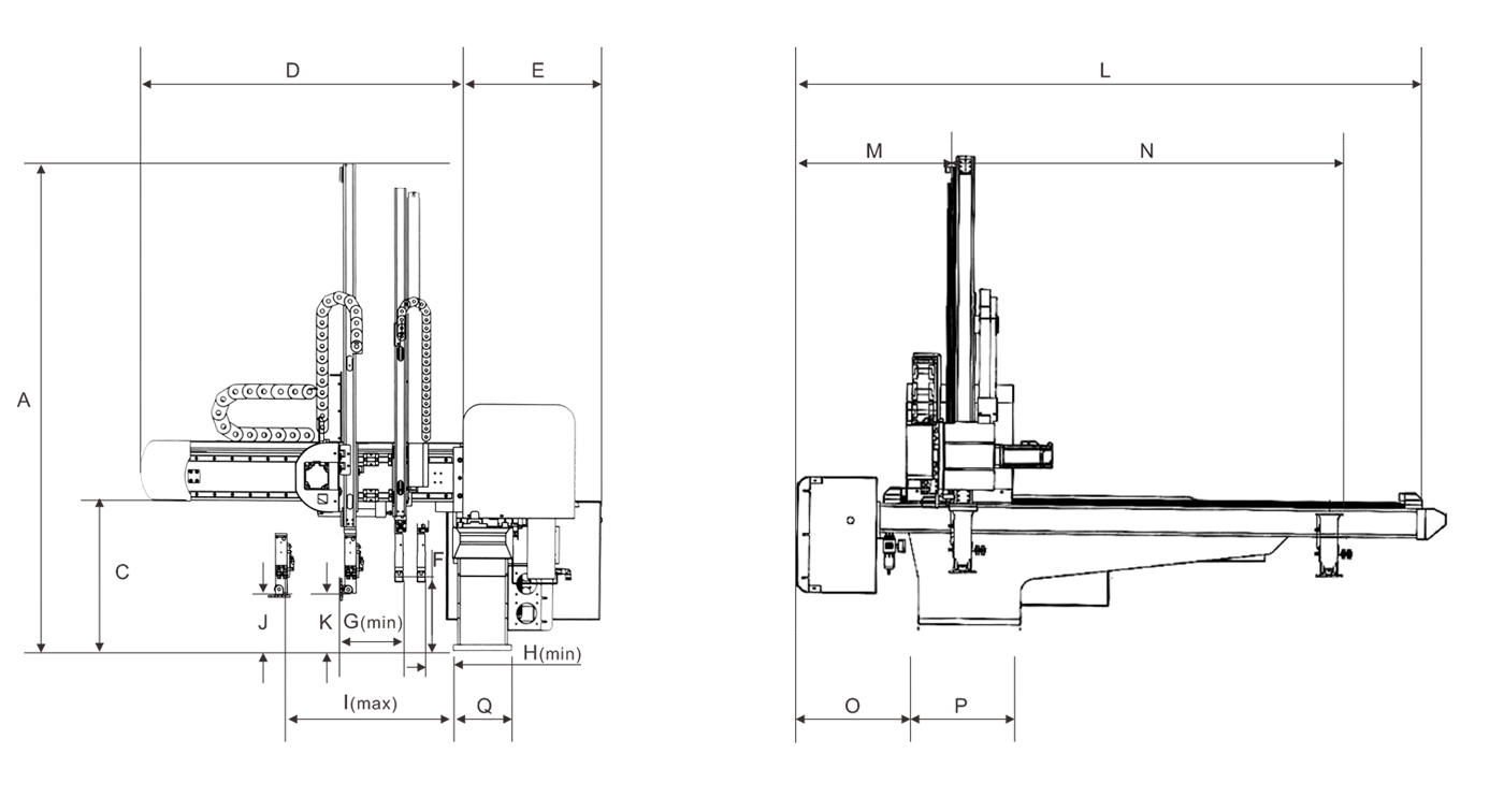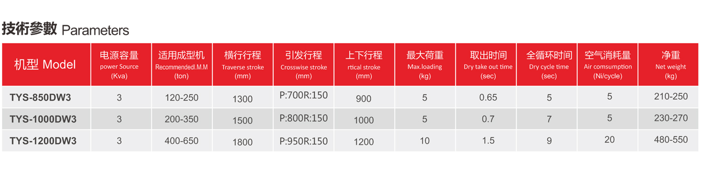 TYS系列標配為雙截單邊式伺服驅動優點:調試方便,運行速度快、動作平穩,使用壽命長。雙截式優點:減低機械手的整機高度,動作穩定性好,手臂上下速度快。引拔(單邊式/框架式)