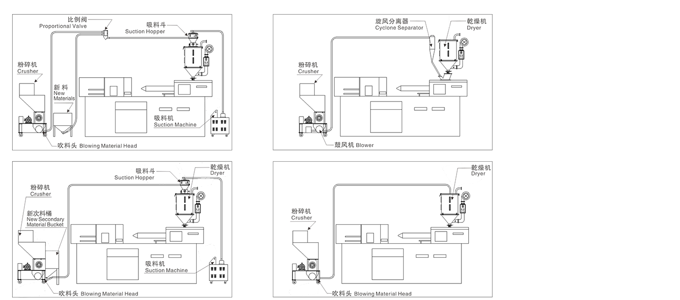30秒内立即全封閉式回收,使水口料不因氧化、濕化吸收空氣中水分污染而造成塑膠物料之强度、應力、顔色、光澤遭受到破壞,故而提高成型品的品質及良率。立即回收設備可减少塑膠原料、人工、管理、倉儲、購料資金的浪費與損耗,降低成本,提高品質及企業競争力。